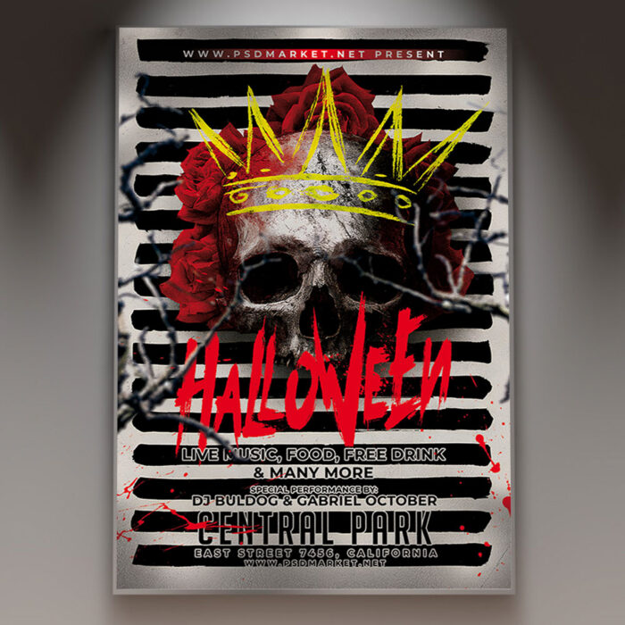 Halloween Party Flyer TemplatePrepare for a night of frights and fun with our chilling **Halloween Party Flyer Template**! This spooky and festive design is perfect for promoting haunted house parties, costume contests, themed club nights, or any gathering that celebrates the most ghoulish night of the year. If you’re looking to create an irresistible invitation that screams “trick or treat,” “boo!,” and “a terrifyingly good time,” this flyer template is engineered to draw a massive and enthusiastic crowd. Expect to see striking visuals, often incorporating classic Halloween elements like carved jack-o’-lanterns, spooky ghosts, crawling spiders, and eerie, gothic typography that captures the macabre and exhilarating spirit of Halloween. This template is all about setting a spine-tingling and high-energy mood, making your “Halloween Party” the ultimate destination for an epic gathering! The **Halloween Party Flyer Template** offers a highly adaptable and professional layout, ensuring you can clearly communicate all the essential details of your event while perfectly maintaining its horrifying and inviting spirit. You can easily customize the text fields to include the specific date and time of your party, the menacing venue location (e.g., a haunted hall, an old mansion), any special entry requirements or ticket tiers, and information about featured entertainment (e.g., a live DJ spinning spooky tunes), special contests (e.g., a costume contest), or enticing food and drink specials (e.g., “blood” punch, witch’s brew), all presented in a clear and appealing way. Add an enticing description of what attendees can expect, perhaps highlighting opportunities for a haunted maze, a “spookiest costume” prize, or simply mingling in a terrifyingly fun atmosphere. Detail any exciting features like a designated photo booth with creepy props, a special prize for the best-dressed ghoul, or a thrilling scavenger hunt. And of course, include clear contact information or prominent social media handles for further engagement and ticket sales. Many templates also provide exciting options to incorporate additional dynamic graphics like subtle light effects, cobweb patterns, or flickering neon lights, or to adjust the impactful color palette (often deep oranges, sinister blacks, and ghostly whites) to perfectly match your brand’s aesthetic or the event’s specific horror theme. This lets you create a truly unique and memorable promotional piece that looks as chilling and exciting as your event feels. Engineered for maximum reach, the **Halloween Party Flyer Template** is designed to be both print-ready for stunning physical distribution and seamlessly optimized for digital sharing. This ensures your exciting invitation reaches a wide and enthusiastic audience. Create eye-catching physical flyers to distribute at clubs, haunted attractions, community centers, or through local event groups. Effortlessly share the flyer digitally through various social media channels with engaging captions that highlight the night’s eerie energy, email announcements that build anticipation, and online event listings that attract horror fans, party-goers, and anyone looking for a thrilling night. This dual functionality helps to maximize visibility and create significant buzz around your Halloween Party. By utilizing this distinctive and attention-grabbing flyer template, you’re not just announcing a party; you’re creating an invitation that broadcasts pure thrilling fun and promises an experience filled with great music, costumes, and unforgettable scares, making your “Halloween Party” the ultimate destination for an epic gathering. Grab this template today and prepare to scare up some fun! — Features of the Halloween Party Flyer Template