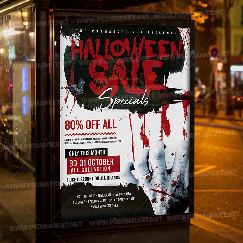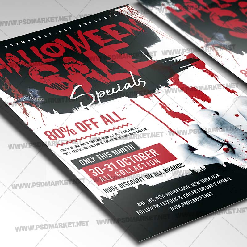 Halloween Sale Template Flyer PSD is a simply modern flyer design by PSDmarket Team to be used with Photoshop CS3 and higher. Save your time and use it for business or for your clients! This can be use for Halloween Sale, Hallo Ween, Blood Night, Horror Party, Halloween Night Event, Halloween Event, Halloween, Halloween Night Party, Scary Night, Trick or Treat, Halloween Night, Happy Halloween, Halloween Party, Halloween Costume Contest, Costume Party, Halloween Night, Kids Halloween Show and others.