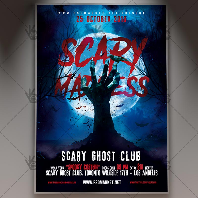 Halloween Scary Madness is a simply modern flyer design by PSDmarket Team to be used with Photoshop CS3 and higher. Save your time and use it for business or for your clients! This can be use for Halloween Day, Halloween Fest, Halloween Carnival, Halloween Night, Happy Halloween, Halloween Celebration or Halloween Festival and others.