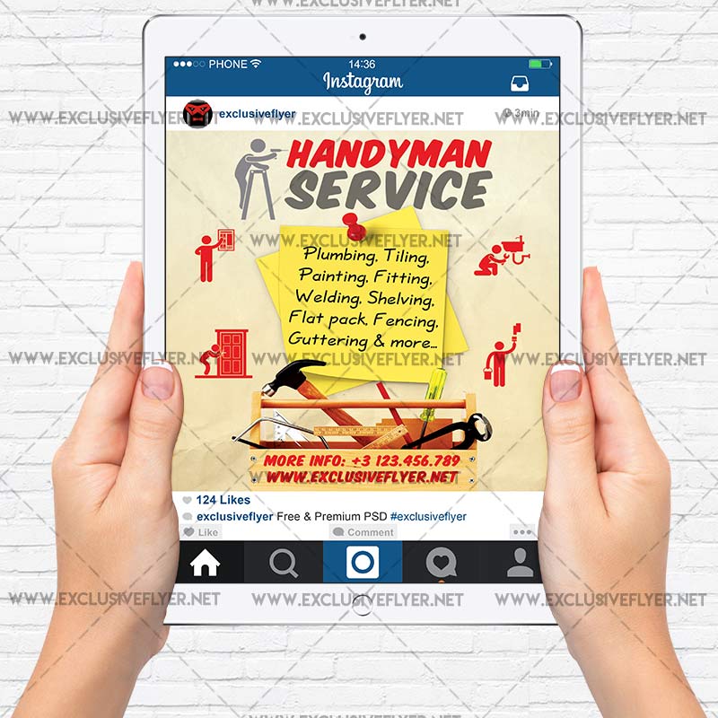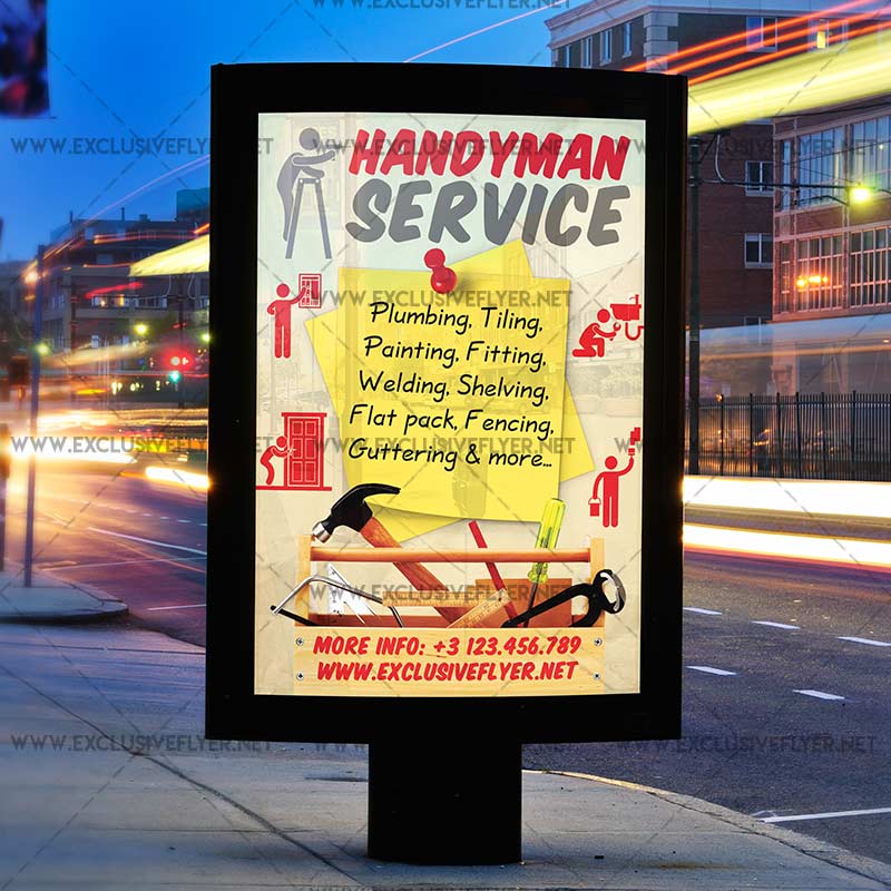The Handyman Service is the exclusive Photoshop PSD flyer template designed by ExclusiveFlyer to promote your Handyman Service. This is a modern, stylish flyer and just be used for a Handyman Service, Roofing Experts Service etc.