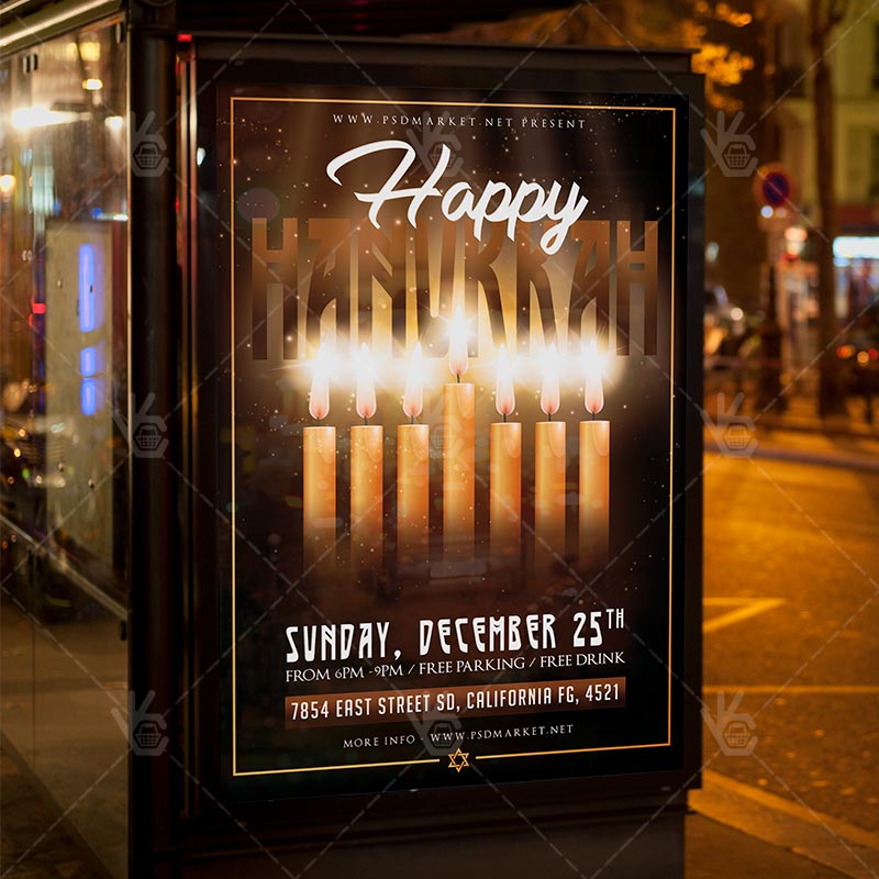 Hanukkah Celebration is a simply modern flyer design by PSDmarket Team to be used with Photoshop CS3 and higher. Save your time and use it for business or for your clients! This can be use for Merry Christmas Party, Jewish Christmas, Jewish Festival, Winter Party, Jewish Christmas Night or Christmas Event and others.