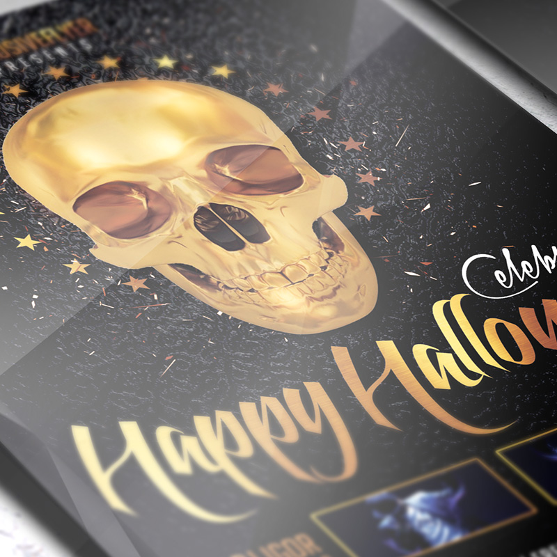 The Happy Halloween is the exclusive Photoshop PSD flyer template designed by ExclusiveFlyer to promote your Halloween Party. This is a modern sport flyer and just be used for a Costume Party or Halloween Night. Dear customers! – you can also: Customize any flyers or Hire Us to create any unique product. Also, you can get unlimited access to all our templates. You can buy 1 month membership, 3 or 6 months membership or even 1 year membership plan and login on site, choose a design, click the button DOWNLOAD TEMPLATE and it’s yours. No hassle, no checkout! When you paid the template, you can find it in your personal account and of course you’ve got a message to your e-mail (maybe in spam) with link to download. Also, you can find all templates, which you buy, in your personal account! All of our flyers have a very good quality (300DPI). And it means that you just need to download one of them and make the necessary modifications such as replace the elements or choose the colors and start to invite your guests! You can order from us design of Banner Ad, Bi-Fold Brochure, Tri-Fold Brochure, Business Card, Logo, One-Sided Flyer, Two-sided Flyer or Postcard. All you need is to checkout and write us all information on our e-mail or skype. (order now). There are a lot of free flyer templates, free business card templates on our site! Also there are a lot of categories of flyers such as club flyers, seasonal flyers, sport flyers and also business flyers. You have a great choise on our site, so good luck! Don’t forget to follow our Facebook community, our page on Twitter, on Pinterest and on Tumblr and leave comments, cause we work for you! PSD is set up in 1275×1875 dimension (4″×6″ with 0,25″ bleed). The PSD file is very well organised, with color coded groups and layers named appropriately. Remember, all stock images of models and other people used only for demonstration all charms of the flyer and don’t included in the download!