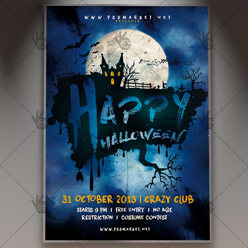 Happy Halloween is a simply modern flyer design by PSDmarket Team to be used with Photoshop CS3 and higher. Save your time and use it for business or for your clients! This can be use for Halloween Day, Halloween Fest, Halloween Carnival, Halloween Night, Happy Halloween, Halloween Celebration or Halloween Festival and others.