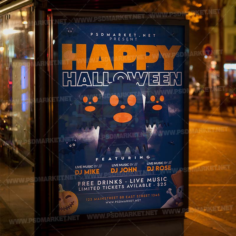 Happy Halloween Template Flyer PSD is a simply modern flyer design by PSDmarket Team to be used with Photoshop CS3 and higher. Save your time and use it for business or for your clients! This can be use for Happy Halloween, Halloween Party, Halloween Costume Contest, Costume Party, Halloween Night, Kids Halloween Show and others.