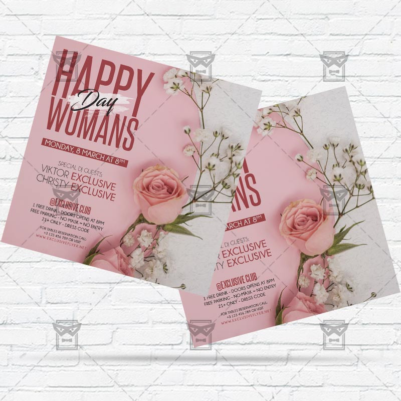 Happy International Womans Day Flyer Template an exclusive PSD flyer template for Adobe Photoshop designed by our best graphic designers to facilitate your task in promoting your business. With our readymade Club flyer in psd format you can invite you customers and guest to your event or to the best Woman’s Day Celebration, Woman’s Day Celebration, 8 March Night or International Woman’s Day in their lives.