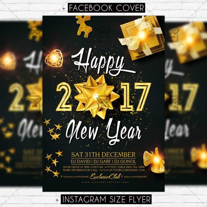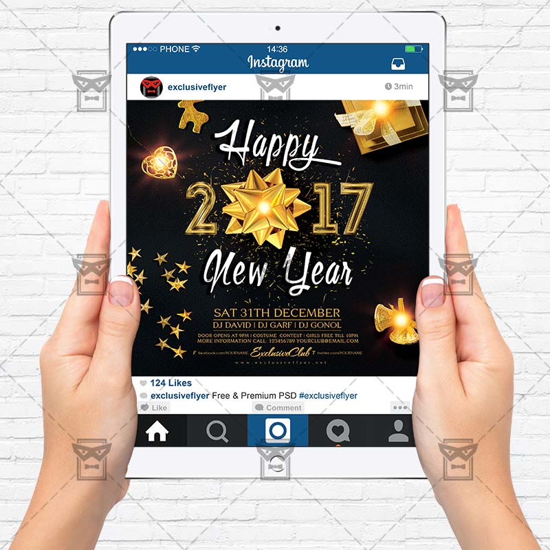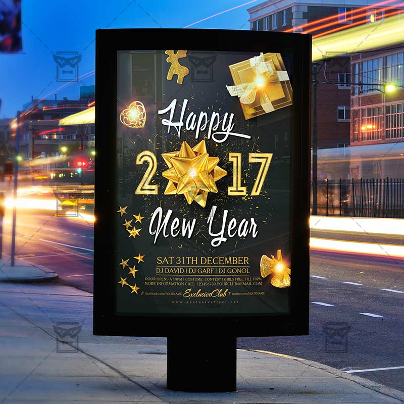 The Happy NYE Party is the exclusive Photoshop PSD flyer template designed by ExclusiveFlyer to promote your Happy NYE Party. This is a modern, stylish flyer and just be used for a 2017 New Year Night, New Year Eve Party etc. Dear customers! – you can also: Customize any flyers or Hire Us to create any unique product. Also, you can get unlimited access to all our templates. You can buy 1 month membership, 3 or 6 months membership or even 1 year membership plan and login on site, choose a design, click the button DOWNLOAD TEMPLATE and it’s yours. No hassle, no checkout! When you paid the template, you can find it in your personal account and of course you’ve got a message to your e-mail (maybe in spam) with link to download. Also, you can find all templates, which you buy, in your personal account! All of our flyers have a very good quality (300DPI). And it means that you just need to download one of them and make the necessary modifications such as replace the elements or choose the colors and start to invite your guests! You can order from us design of Banner Ad, Bi-Fold Brochure, Tri-Fold Brochure, Business Card, Logo, One-Sided Flyer, Two-sided Flyer or Postcard. All you need is to checkout and write us all information on our e-mail or skype. (order now). There are a lot of free flyer templates, free business card templates on our site! Also there are a lot of categories of flyers such as club flyers, seasonal flyers, sport flyers and also business flyers. You have a great choise on our site, so good luck! Don’t forget to follow our Facebook community, our page on Twitter, on Pinterest and on Tumblr and leave comments, cause we work for you! PSD is set up in 1275×1875 dimension (4” x 6” with 0,25” bleed). The PSD file is very well organised, with color coded groups and layers named appropriately. Remember, all stock images of models and other people used only for demonstration all charms of the flyer and don’t included in the download!