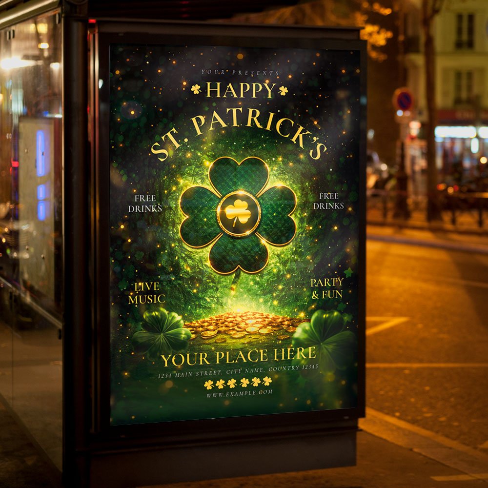 Happy St. Patrick Day 2026 Flyer TemplateInvite the world to your luckiest party yet with the Happy St. Patrick Day 2026 Flyer Template. As we approach the legendary date of March 17, 2026, the demand for immersive Irish experiences is at an all-time high. This professional Photoshop template is designed for pubs, clubs, and outdoor festivals that want to capture the true magic of the Emerald Isle. Featuring vibrant 3D shamrocks, cinematic emerald light flares, and classic golden accents, it ensures your promotion stands out as the premier destination for every leprechaun in town. The Happy St. Patrick Day 2026 Flyer Template is a flexible, high-performance tool for any promoter. This fully layered PSD file is meticulously organized, allowing you to customize the atmosphere of your event in seconds. Effortlessly update text layers to feature your headlining Celtic bands, guest DJs, venue address, and 2026 showtimes. Use the smart object layers to highlight exclusive event features such as VIP “Pot of Gold” bottle service, interactive green light shows, traditional Irish folk dance-offs, or specialty 2026 green craft beer lineups. With its high-resolution structure, every detail—from the froth on the pint to the gleam on the gold—remains razor-sharp. Optimized for the digital-heavy landscape of 2026, this template is 100% print-ready and perfectly scaled for viral social media engagement. Create high-impact physical posters for local promotion and simultaneously export perfectly sized graphics for Instagram, TikTok, and Facebook to reach a massive audience. By choosing this distinctive and professional flyer, you aren’t just selling tickets; you’re promising an unforgettable 2026 celebration. Download the Happy St. Patrick Day 2026 Flyer Template today and let the luck of the Irish drive your success! — Features of the Happy St. Patrick Day 2026 Flyer Template