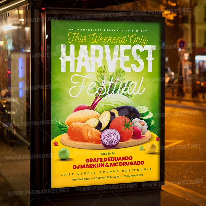 Harvest Festival PSD Template Flyer is a simply modern flyer design by PSDmarket Team to be used with Photoshop CS3 and higher. Save your time and use it for business or for your clients! This can be use for Harvest Festival, Harvest Fest, Harvest Day, World Harvest Day, Harvest Event and others.