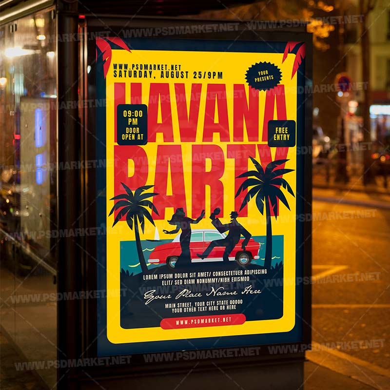 Havana Party Event PSD Template Flyer is a simply modern flyer design by PSDmarket Team to be used with Photoshop CS3 and higher. Save your time and use it for business or for your clients! This can be use for Havana Party, Havana Party Night, Havana Party Event, Havana Day, Cuba Party, Summer Party, Cuba Event, Havana Club Party, Havana Night, Havana Tour and others.