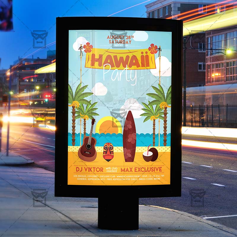 Hawaii Night A5 Flyer Template for Adobe Photoshop