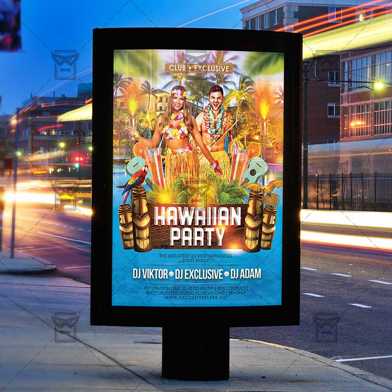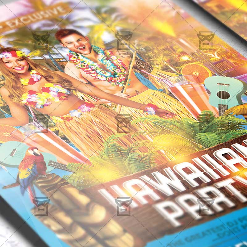 The Hawaiian Party is the exclusive Photoshop PSD flyer template designed by ExclusiveFlyer to promote your Hawaiian Party Night. This is a modern, stylish flyer and just be used for aAloha Party, Tiki Bar, Summer Aloha Night etc.