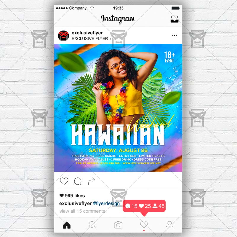 Hawaiian Weekend Template an exclusive PSD flyer template for Adobe Photoshop designed by our best graphic designers to facilitate your task in promoting your business. With our readymade Club flyer in psd format you can invite you customers and guest to your event or to the best Summer Night, Summer Chill, Summer Vibes, Summer Club Party, Summer Jam, Summer Madness Night in their lives.