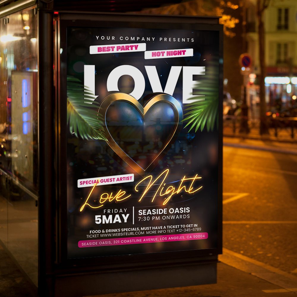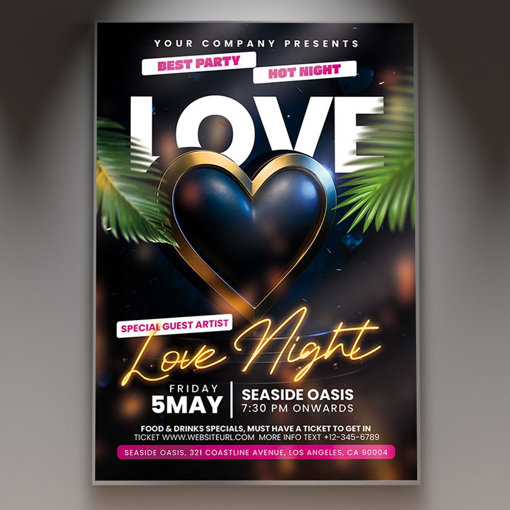 Heart Love Night Flyer TemplateCapture the essence of romance with a design that pulses with emotion! Our stunning **Heart Love Night Flyer Template** is the premier choice for promoting any evening event focused on love, passion, and togetherness. Whether you are hosting a Valentine’s Day bash, a romantic ballroom dance, or an intimate “Love Night” at a local lounge, this professional PSD template provides the perfect visual foundation. The design centers around powerful heart imagery, symbolizing the core of your celebration. If you want to create an invitation that says “**Follow Your Heart to Our Dance Floor**,” “**A Night Where Love Rules**,” or “**The Ultimate Heart-Themed Celebration**,” this flyer is engineered to draw a crowd of romantics and party-goers alike. Expect to see mesmerizing visuals, featuring glowing heart graphics, soft focus light flares, and a luxurious color palette—typically blending deep reds, soft pinks, and elegant gold or silver accents—that perfectly captures the warm and inviting spirit of a **Heart Love Night Event**. The **Heart Love Night Flyer Template** offers a highly adaptable and professional layout (as a PSD file), ensuring your promotional message is clear, stylish, and effective. You can easily customize the text fields to include your venue’s name, the event date, time, and specific highlights of the evening, such as **live romantic music**, **signature “Love” cocktails**, or a **best-dressed couple contest**. Because this is a fully layered PSD file, you have total control over the artistic direction. You can adjust the intensity of the heart’s glow, change background textures, or modify the typography to perfectly match your brand’s aesthetic. This versatility ensures that your **Heart Love Night Flyer** will look professional whether it’s for a high-energy nightclub or a sophisticated, upscale restaurant event. Engineered for maximum visibility, the **Heart Love Night Flyer Template** is 100% print-ready and expertly optimized for the digital space. This means you can produce high-quality physical posters and handbills, while also effortlessly sharing the design on Instagram, Facebook, and Twitter. This dual-purpose design helps you reach your audience wherever they are, building anticipation and driving reservations. By choosing this distinctive and heart-centered flyer template, you aren’t just announcing a party; you’re promising a night filled with connection and beautiful memories, making your “**Heart Love Night**” the must-attend event of the season. Download this template today and start spreading the love! — Features of the Heart Love Night Flyer Template