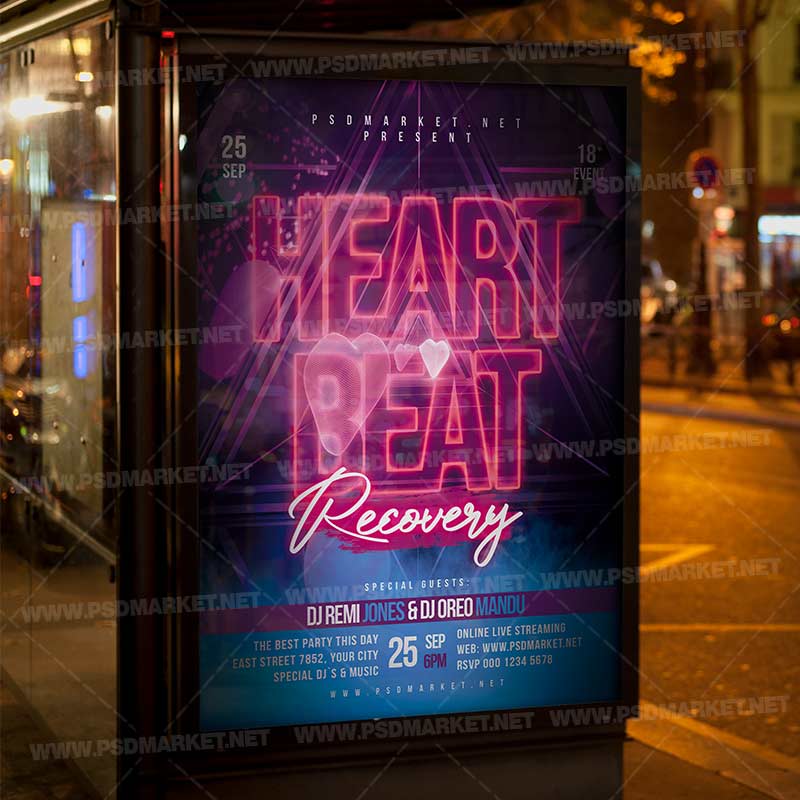 Heartbeat Recovery Template Flyer PSD is a simply modern flyer design by PSDmarket Team to be used with Adobe Photoshop CS3 and higher. Save your time and use it for business or for your clients! This can be use for Heartbeat Recovery, Heartbeat Recovery Party, Heartbeat Recovery Night, Heartbeat Recovery Event, Dj Sound, Dj Club Event, Dj Party, Dj Night, Dj Club Party, Club Party, Online Party, Online Stream Party, Live Party, House Party, Home Night, Party Night, Rave Club Party, Rave Dj, Dj Battle and others.