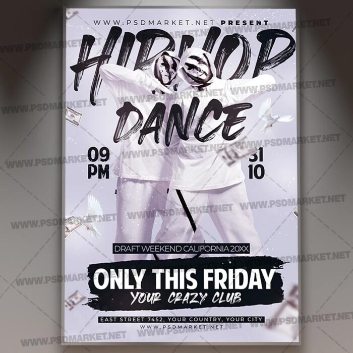 Hip Hop Dance PSD Template Flyer is a simply modern flyer design by PSDmarket Team to be used with Adobe Photoshop CS3 and higher. Save your time and use it for business or for your clients! This can be use for Hip Hop Dance Event, Hip Hop Dance Party, Hip Hop Dance Party Night, Hip Hop Dance Show, Dj Show, Special Dj Party, Special Guest Dj, Special Guest, Night Party, Friday Party, Music Club, Party Night, Party Friday, World Party Day, Dj Sound, Dj Club Event, Dj Party, Dj Night, Black Party, Club Party, Online Party, Online Stream Party, Live Party, House Party, Home Night, Party Night, Rave Club Party, Rave Dj, Dj Battle and others.