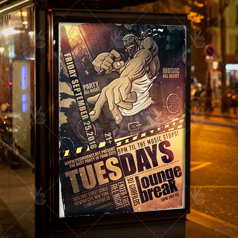 Hip Hop Night is a simply modern flyer design by PSDmarket Team to be used with Photoshop CS3 and higher. Save your time and use it for business or for your clients! This can be use for RAP Trash, Electro House Party, RAP Festival, R&B Party, House Night, Hip Hop Party, Hip Hop Saturdays and others.