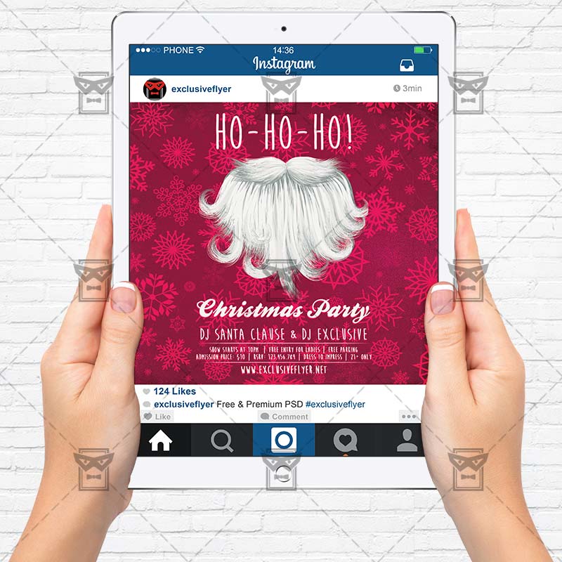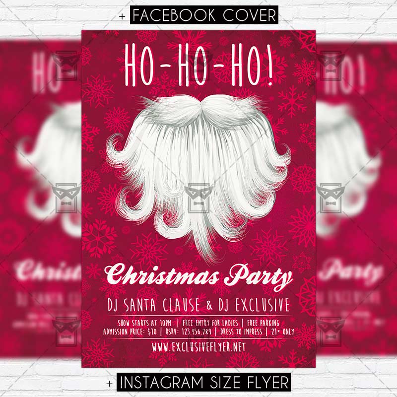 The Ho-Ho-Ho Party is the exclusive Photoshop PSD flyer template designed by ExclusiveFlyer to promote your Ho-Ho-Ho Party. This is a modern, stylish flyer and just be used for a Christmas Night, Christmas Evening etc. Dear customers! – you can also: Customize any flyers or Hire Us to create any unique product. Also, you can get unlimited access to all our templates. You can buy 1 month membership, 3 or 6 months membership or even 1 year membership plan and login on site, choose a design, click the button DOWNLOAD TEMPLATE and it’s yours. No hassle, no checkout! When you paid the template, you can find it in your personal account and of course you’ve got a message to your e-mail (maybe in spam) with link to download. Also, you can find all templates, which you buy, in your personal account! All of our flyers have a very good quality (300DPI). And it means that you just need to download one of them and make the necessary modifications such as replace the elements or choose the colors and start to invite your guests! You can order from us design of Banner Ad, Bi-Fold Brochure, Tri-Fold Brochure, Business Card, Logo, One-Sided Flyer, Two-sided Flyer or Postcard. All you need is to checkout and write us all information on our e-mail or skype. (order now). There are a lot of free flyer templates, free business card templates on our site! Also there are a lot of categories of flyers such as club flyers, seasonal flyers, sport flyers and also business flyers. You have a great choise on our site, so good luck! Don’t forget to follow our Facebook community, our page on Twitter, on Pinterest and on Tumblr and leave comments, cause we work for you! PSD is set up in 1275×1875 dimension (4” x 6” with 0,25” bleed). The PSD file is very well organised, with color coded groups and layers named appropriately. Remember, all stock images of models and other people used only for demonstration all charms of the flyer and don’t included in the download!