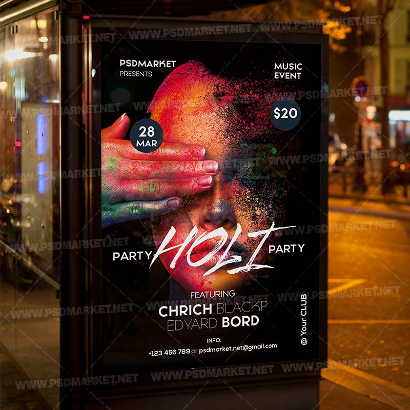 Holi Party Template Flyer PSD is a simply modern flyer design by PSDmarket Team to be used with Photoshop CS3 and higher. Save your time and use it for business or for your clients! This can be use for Holi Template, Holi Fest, Holi Festival, Holi Party, Holi Night Party, Festival Of Color, Holi Night, Holi Festival Party, Holi Fest Party, Happy Holi Party, Holi Colour Festival and others.