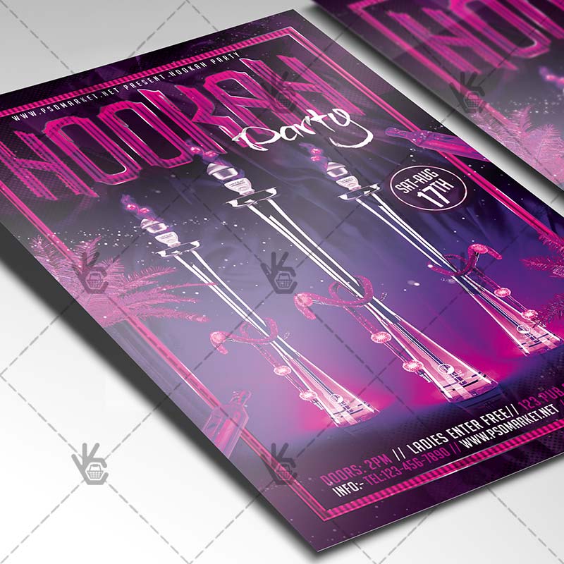 Hookah Party is a simply modern flyer design by PSDmarket Team to be used with Photoshop CS3 and higher. Save your time and use it for business or for your clients! This can be use for Hookah Night, Hookah Lounge, Hookah Fridays, Hookah Festival, Hookah Relaxation, Hookah Days and others.