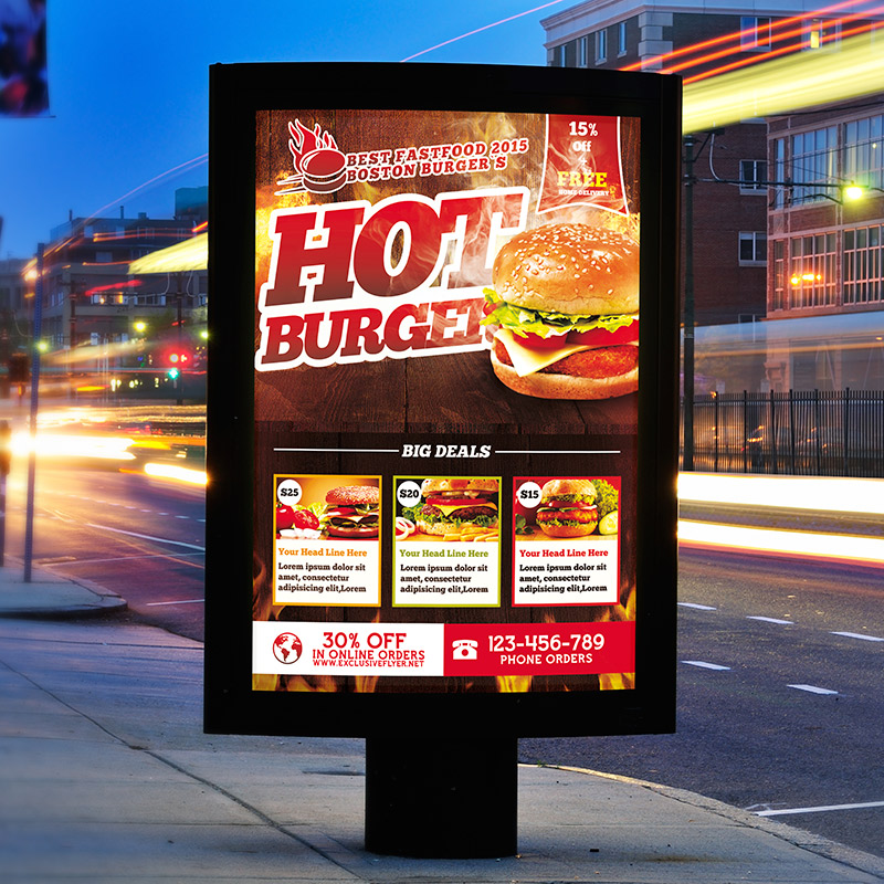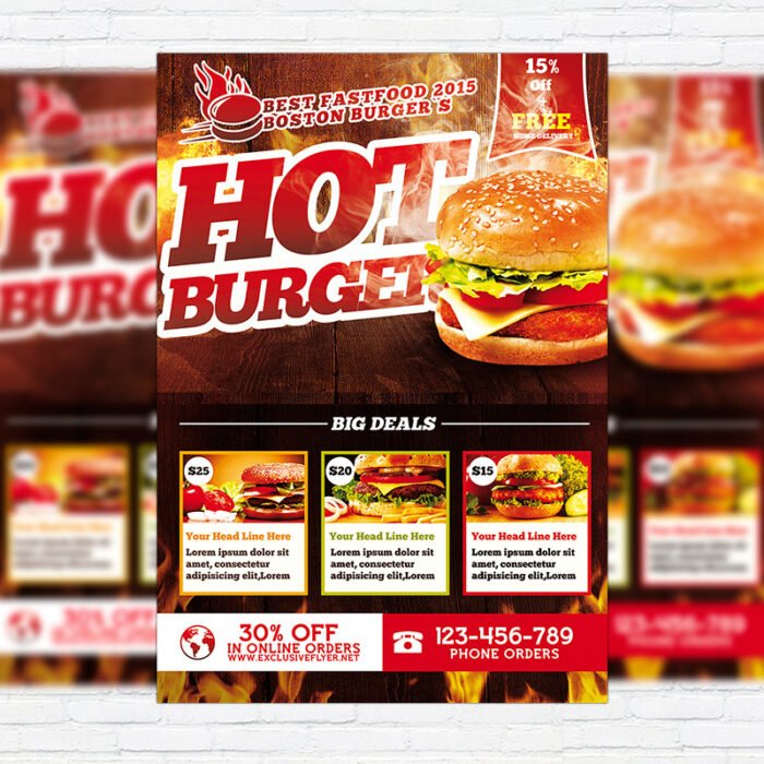 Hot Burger – Premium Flyer Template + Facebook Cover
