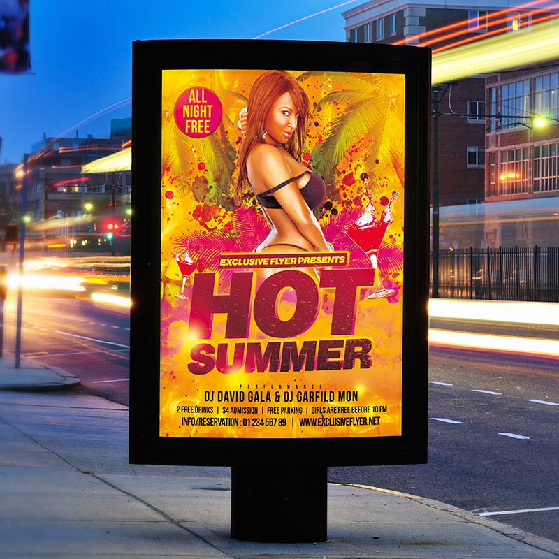 The Hot Summer is the exclusive Photoshop PSD flyer template designed by ExclusiveFlyer to promote your Hot Summer Party. This is a modern, stylish, perfect flyer and just be used for a Summer Party or Summer Night or Sexy Party etc. Dear customers! – you can also: Customize any flyers or Hire Us to create any unique product. Also, you can get unlimited access to all our templates. You can buy 1 month membership, 3 or 6 months membership or even 1 year membership plan and login on site, choose a design, click the button DOWNLOAD TEMPLATE and it’s yours. No hassle, no checkout! When you paid the template, you can find it in your personal account and of course you’ve got a message to your e-mail (maybe in spam) with link to download. Also, you can find all templates, which you buy, in your personal account! All of our flyers have a very good quality (300DPI). And it means that you just need to download one of them and make the necessary modifications such as replace the elements or choose the colors and start to invite your guests! You can order from us design of Banner Ad, Bi-Fold Brochure, Tri-Fold Brochure, Business Card, Logo, One-Sided Flyer, Two-sided Flyer or Postcard. All you need is to checkout and write us all information on our e-mail or skype. (order now). There are a lot of free flyer templates, free business card templates on our site! Also there are a lot of categories of flyers such as club flyers, seasonal flyers, sport flyers and also business flyers. You have a great choise on our site, so good luck! Don’t forget to follow our Facebook community, our page on Twitter, on Pinterest and on Tumblr and leave comments, cause we work for you! PSD is set up in 1275×1875 dimension (4″×6″ with 0,25″ bleed). The PSD file is very well organised, with color coded groups and layers named appropriately. Remember, all stock images of models and other people used only for demonstration all charms of the flyer and don’t included in the download!
