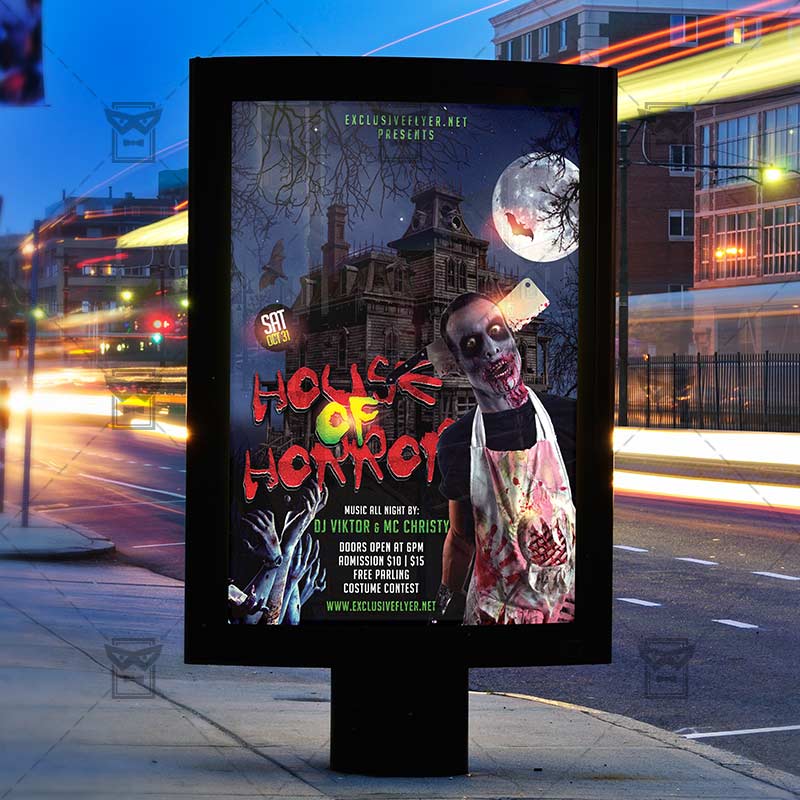 The House of Horror is the exclusive Photoshop PSD flyer template designed by ExclusiveFlyer to promote your House of Horror. This is a modern, stylish flyer and just be used for Halloween Night, Trick or Trit Party, Scarry Party, Bloody Night etc.