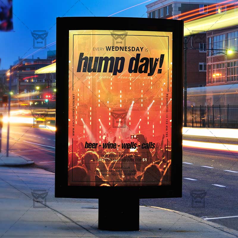 Hump Day is an exclusive PSD flyer template for Adobe Photoshop designed by our best graphic designers to facilitate your task in promoting your business. With our readymade Club flyer in psd format you can invite you customers and guest to your event or to the best Hump Day Party, After Work Night Party or Best Club Party in their lives.