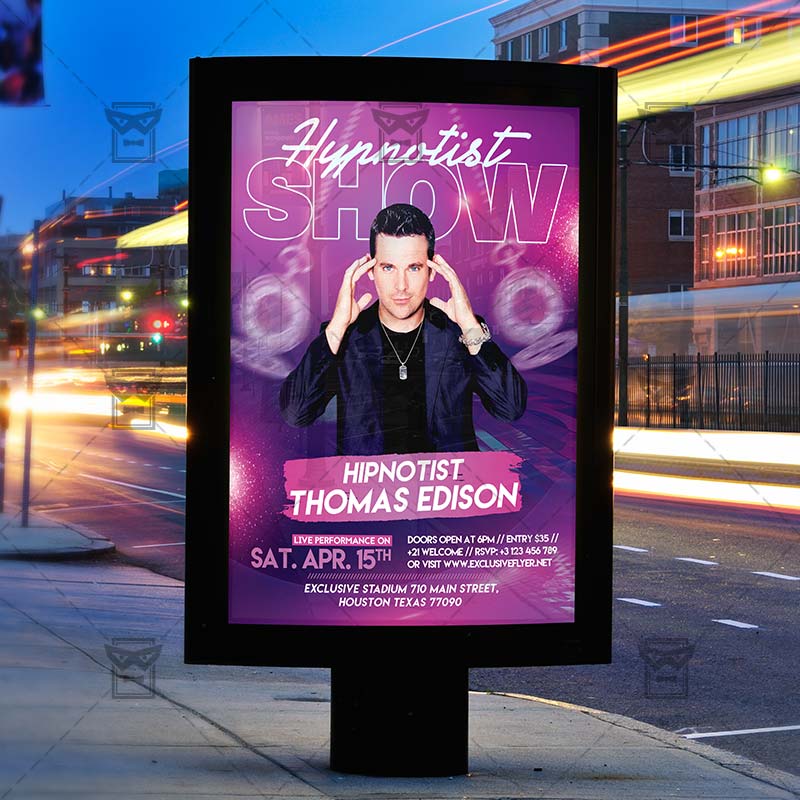 Hypnotist Show is an exclusive PSD flyer template for Adobe Photoshop designed by our best graphic designers to facilitate your task in promoting your business. With our readymade Hypnotist Show Night flyer in psd format you can invite you customers and guest to your event or to the best Hypnotist Night, Comedy Hypnotist Show or Hypnotist Live Party in their lives.
