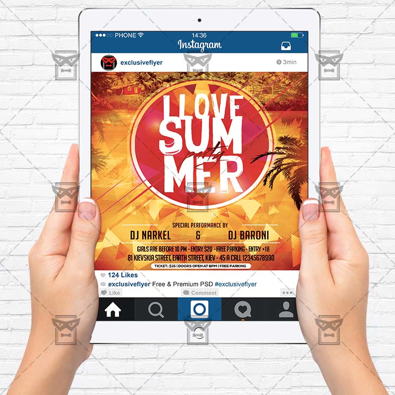 I Love Summer – Premium Flyer Template + Instagram Size Flyer