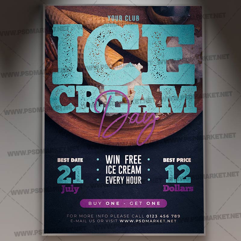 Ice Cream Day Event Template Flyer PSD is a simply modern flyer design by PSDmarket Team to be used with Photoshop CS3 and higher. Save your time and use it for business or for your clients! This can be use for Ice Cream Day Event, Ice Cream Day, World Ice Cream, Ice Cream Festival, World Ice Cream Festival, Cream Day, Ice Cream Marathon, Ice Cream Party, Ice Cream Night and others.