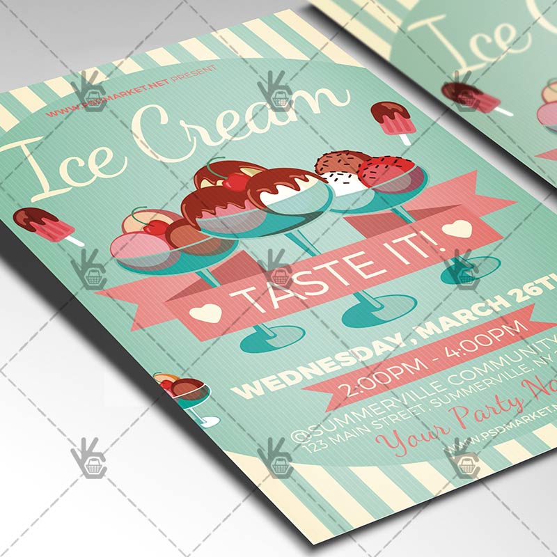 Ice Cream Flyer is a simply modern flyer design by PSDmarket Team to be used with Photoshop CS3 and higher. Save your time and use it for business or for your clients! This can be use for Ice Cream, Farmer Market Festival, Food Festival, Ice Cream Festival, Ice Cream Day, Ice Cream Shop, Ice Cream Market, Farmer Market Day, Bio Market and others.