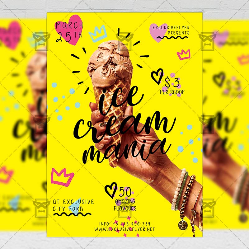 Ice Cream Mania A5 Flyer Template for Adobe Photoshop