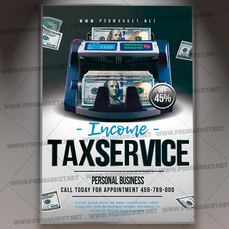 Income Tax Service Template Flyer PSD is a simply modern flyer design by PSDmarket Team to be used with Photoshop CS3 and higher. Save your time and use it for business or for your clients! This can be use for Tax Prep, Tax Preparation, Tax Time, Career, Tax, Tax Day, Tax Preparer, Tax Prep, Income Tax, Tax Refund, Tax Service, Tax Services or Tax Event and others.