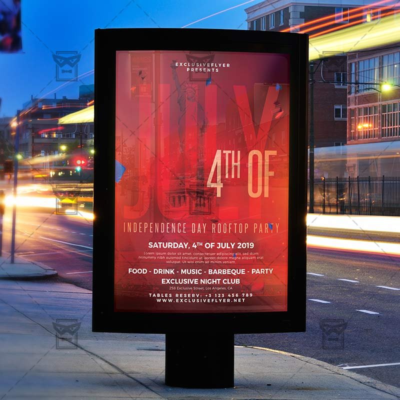Independence Day Rooftop Party an exclusive PSD flyer template for Adobe Photoshop designed by our best graphic designers to facilitate your task in promoting your business. With our readymade 4th of July flyer in psd format you can invite you customers and guest to your event or to the best 4th of July Rooftop Party, USA Independence Day Takeover, USA 4th of July Night, Independence Day Barbeque or 4th of July BBQ in their lives.