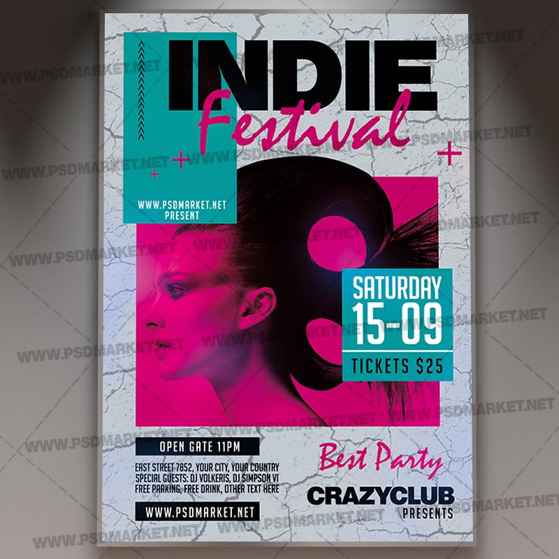 Indie Festival Flyer is a simply modern flyer design by PSDmarket Team to be used with Photoshop CS3 and higher. Save your time and use it for business or for your clients! This can be use for Indie Festival, Indie Party, Indie Night, Indie Festival, Indie Fest, Rock Night, Indie Music and others.
