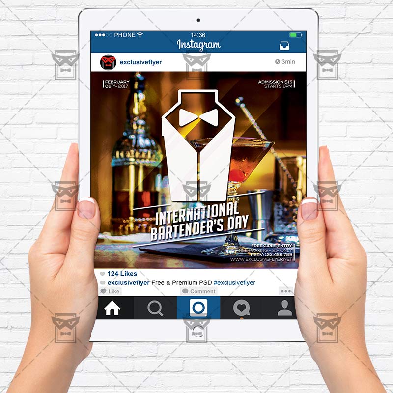 The International Bartenders Day is the exclusive Photoshop PSD flyer template designed by ExclusiveFlyer to promote your International Bartenders Day Party. This is a modern, stylish flyer and just be used for a Bartenders Day, Drinks Party, Shots Night, Weekend Drinks Party etc. Dear customers! – you can also: Customize any flyers or Hire Us to create any unique product. Also, you can get unlimited access to all our templates. You can buy 1 month membership, 3 or 6 months membership or even 1 year membership plan and login on site, choose a design, click the button DOWNLOAD TEMPLATE and it’s yours. No hassle, no checkout! When you paid the template, you can find it in your personal account and of course you’ve got a message to your e-mail (maybe in spam) with link to download. Also, you can find all templates, which you buy, in your personal account! All of our flyers have a very good quality (300DPI). And it means that you just need to download one of them and make the necessary modifications such as replace the elements or choose the colors and start to invite your guests! You can order from us design of Banner Ad, Bi-Fold Brochure, Tri-Fold Brochure, Business Card, Logo, One-Sided Flyer, Two-sided Flyer or Postcard. All you need is to checkout and write us all information on our e-mail or skype. (order now). There are a lot of free flyer templates, free business card templates on our site! Also there are a lot of categories of flyers such as club flyers, seasonal flyers, sport flyers and also business flyers. You have a great choise on our site, so good luck! Don’t forget to follow our Facebook community, our page on Twitter, on Pinterest and on Tumblr and leave comments, cause we work for you! PSD is set up in 1275×1875 dimension (4” x 6” with 0,25” bleed). The PSD file is very well organised, with color coded groups and layers named appropriately. Remember, all stock images of models and other people used only for demonstration all charms of the flyer and don’t included in the download!