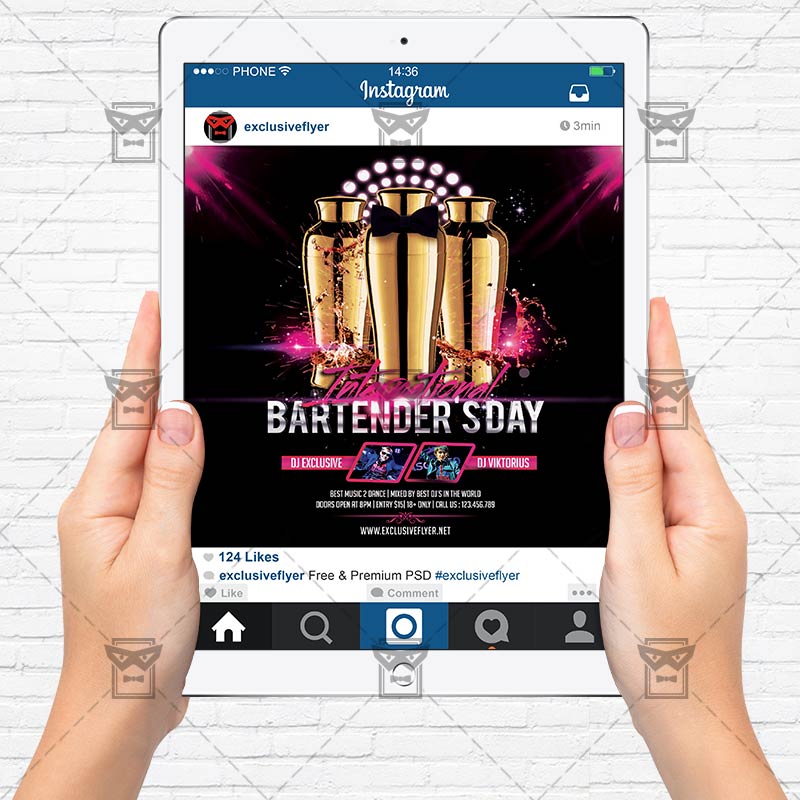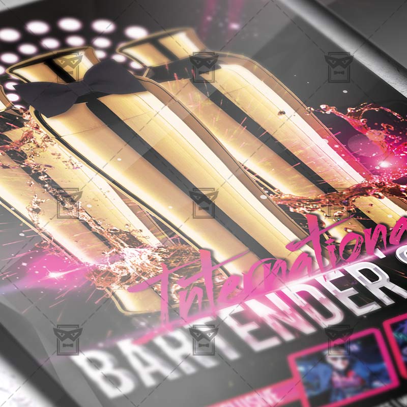 The International Bartenders Day is the exclusive Photoshop PSD flyer template designed by ExclusiveFlyer to promote your International Bartenders Day Party. This is a modern, stylish flyer and just be used for a Bartenders Day, Drinks Party, Shots Night, Weekend Drinks Party etc. Dear customers! – you can also: Customize any flyers or Hire Us to create any unique product. Also, you can get unlimited access to all our templates. You can buy 1 month membership, 3 or 6 months membership or even 1 year membership plan and login on site, choose a design, click the button DOWNLOAD TEMPLATE and it’s yours. No hassle, no checkout! When you paid the template, you can find it in your personal account and of course you’ve got a message to your e-mail (maybe in spam) with link to download. Also, you can find all templates, which you buy, in your personal account! All of our flyers have a very good quality (300DPI). And it means that you just need to download one of them and make the necessary modifications such as replace the elements or choose the colors and start to invite your guests! You can order from us design of Banner Ad, Bi-Fold Brochure, Tri-Fold Brochure, Business Card, Logo, One-Sided Flyer, Two-sided Flyer or Postcard. All you need is to checkout and write us all information on our e-mail or skype. (order now). There are a lot of free flyer templates, free business card templates on our site! Also there are a lot of categories of flyers such as club flyers, seasonal flyers, sport flyers and also business flyers. You have a great choise on our site, so good luck! Don’t forget to follow our Facebook community, our page on Twitter, on Pinterest and on Tumblr and leave comments, cause we work for you! PSD is set up in 1275×1875 dimension (4” x 6” with 0,25” bleed). The PSD file is very well organised, with color coded groups and layers named appropriately. Remember, all stock images of models and other people used only for demonstration all charms of the flyer and don’t included in the download!