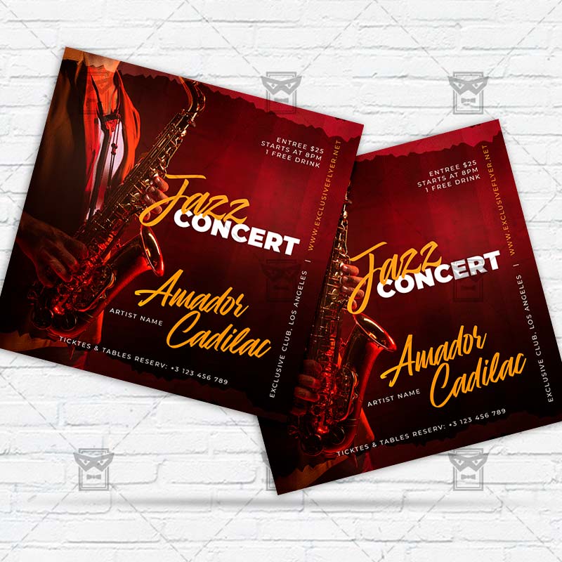 Jazz Concert Template an exclusive PSD flyer template for Adobe Photoshop designed by our best graphic designers to facilitate your task in promoting your business. With our readymade Club flyer in psd format you can invite you customers and guest to your event or to the best Jazz Party, Jazz Live Night, Jazz Event, Jazz Online Show, Jazz Night Show, Jazz Bar in their lives.