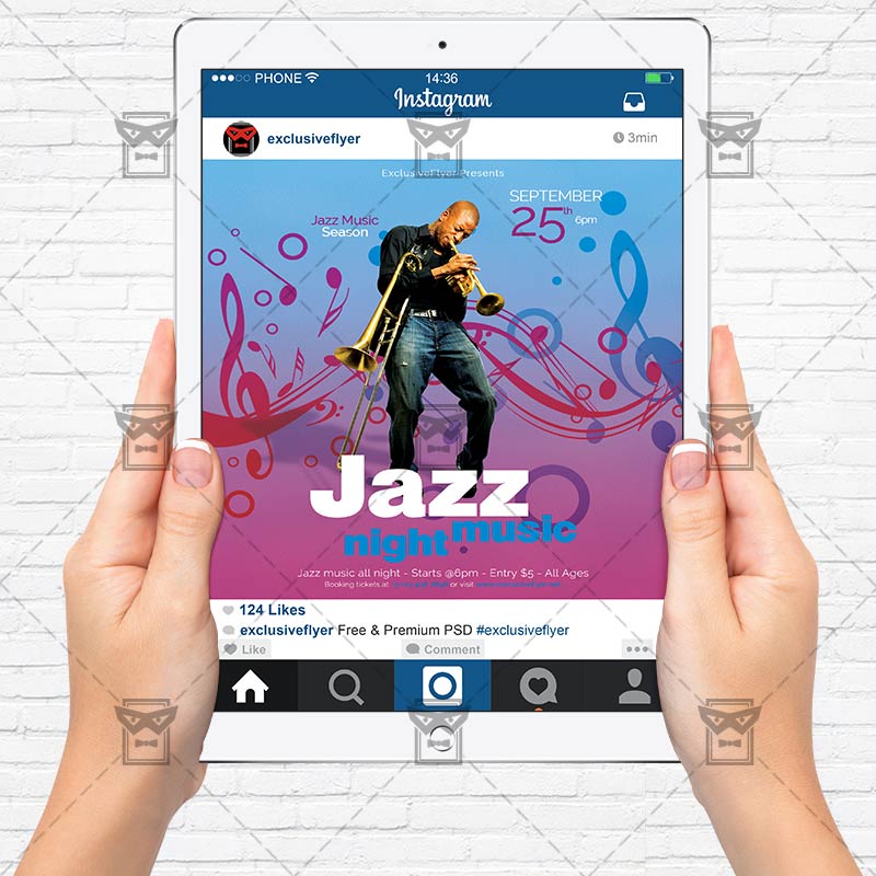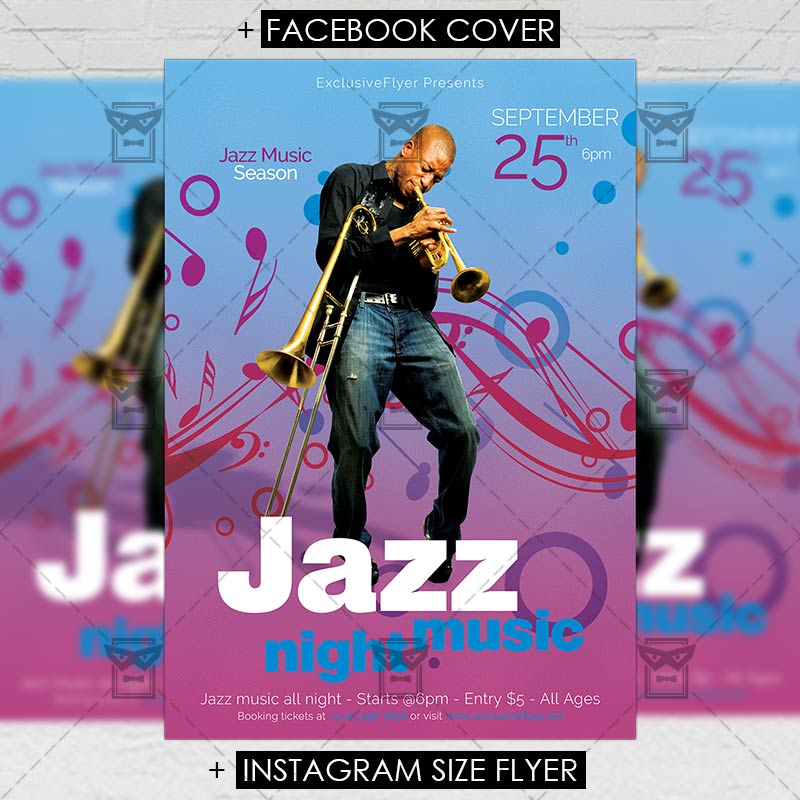 The Jazz Music Night is the exclusive Photoshop PSD flyer template designed by ExclusiveFlyer to promote your Jazz Music Night. This is a modern, stylish flyer and just be used for Jazz Night, Jazz Party, Music Night etc.