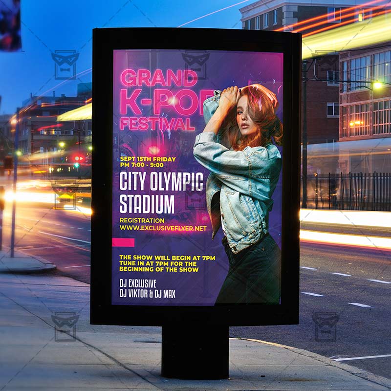 K-POP Festival Template an exclusive PSD flyer template for Adobe Photoshop designed by our best graphic designers to facilitate your task in promoting your business. With our readymade Club flyer in psd format you can invite you customers and guest to your event or to the best K-Pop Fest, K-Pop Party, Music Festival K-POP Night, Music Night, Dance Party or Club Night in their lives.