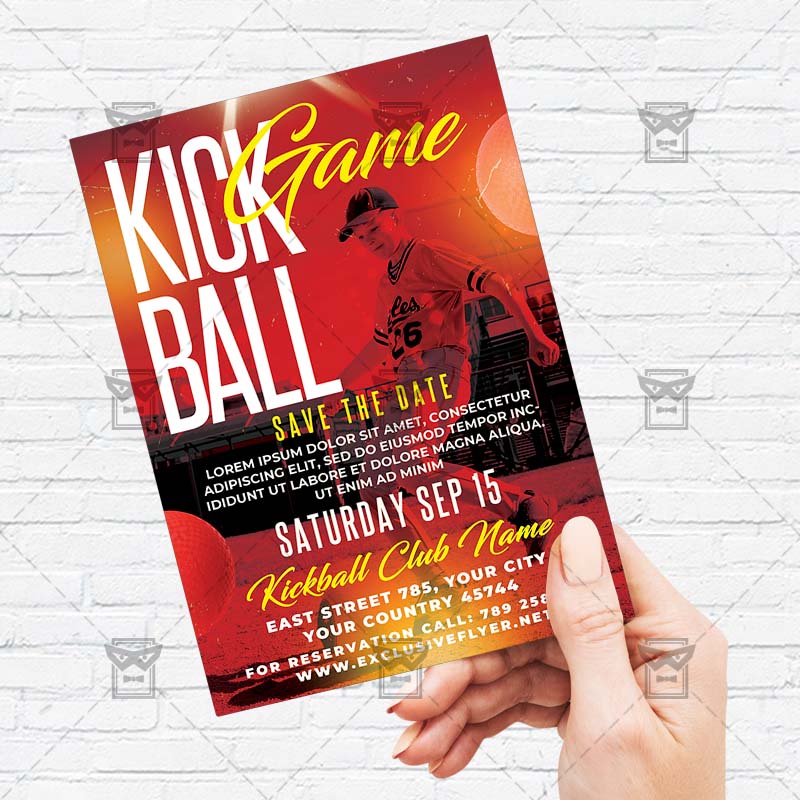 Kickball PSD Template Template an exclusive PSD flyer template for Adobe Photoshop designed by our best graphic designers to facilitate your task in promoting your business. This psd poster/flyer is the best choice for Kickball Game, Kickball Charity Event, Kickball Event, Kickball Show. With our readymade Kickball PSD Template flyer in psd format you can invite you customers and guest to your event with a minimum of efforts and time.