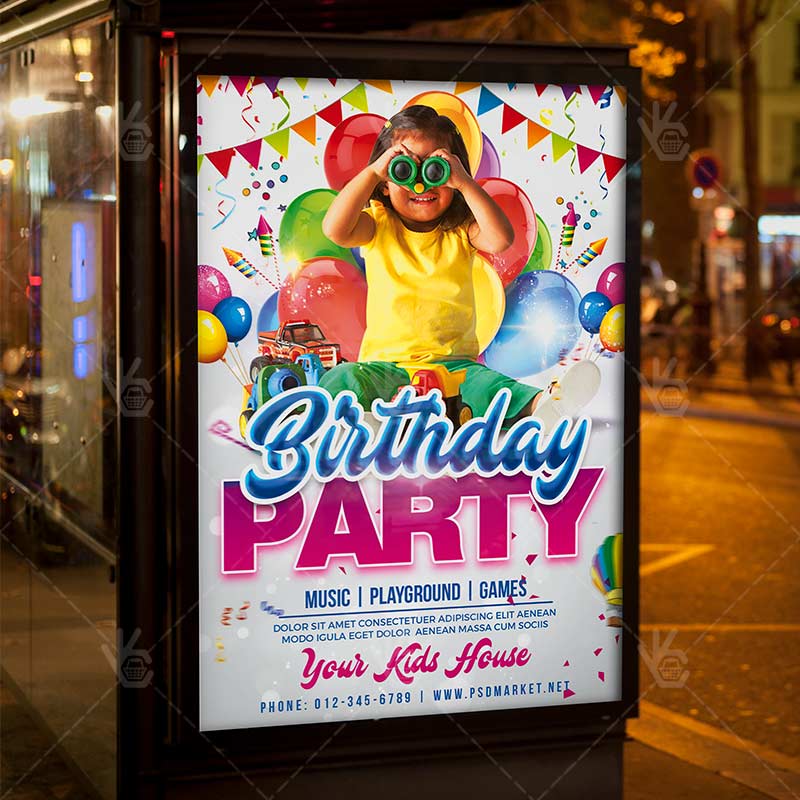 Kids Birthday Party Flyer is a simply modern flyer design by PSDmarket Team to be used with Photoshop CS3 and higher. Save your time and use it for business or for your clients! This can be use for Kids Birthday Party, Kids Party, Kids Night, VIP Birthday, Birthday Event, Birthday, Birthday Party, Birthday Night, Birthday Party Event, Birthday Party Night, Birthday, Anniversary Party , Anniversary Night, VIP Party, Elegant Party or Exclusive Night and others.