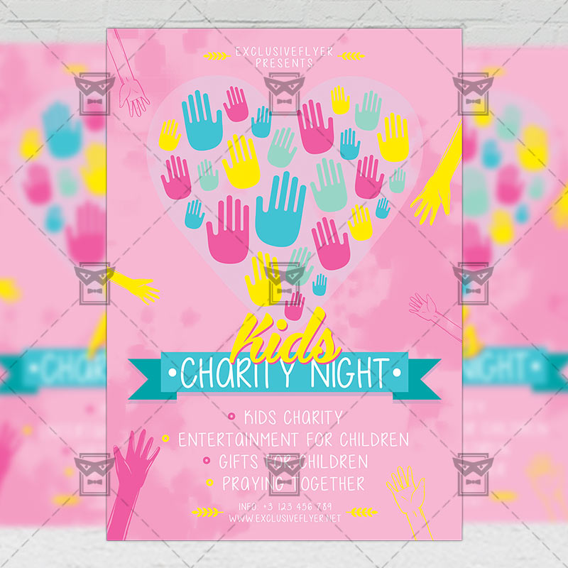 Kids Charity Night A5 Flyer Template for Adobe Photoshop
