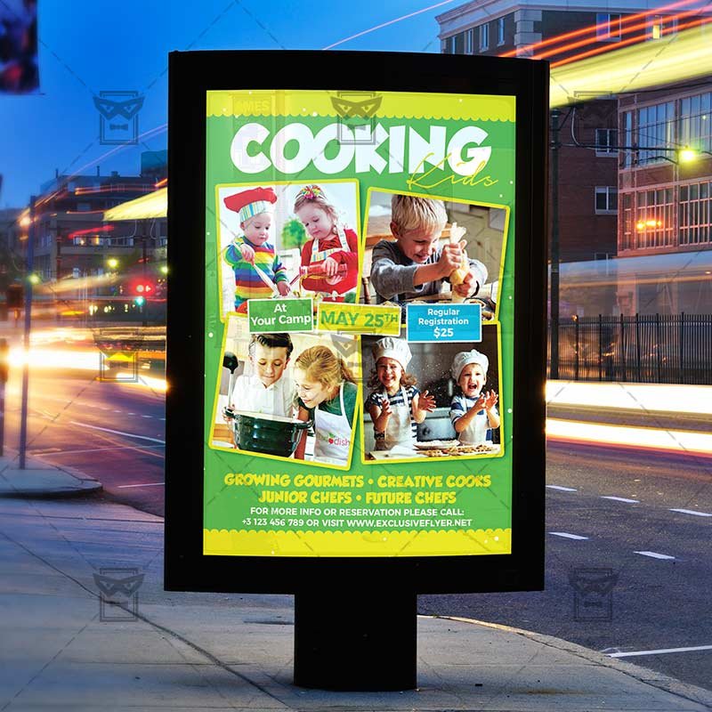 Kids Cookout Classes an exclusive PSD flyer template for Adobe Photoshop designed by our best graphic designers to facilitate your task in promoting your business. With our readymade Kids flyer in psd format you can invite you customers and guest to your event or to the best Childrens Cooking Lessons, Kids Cookout, Kids Baking Classes or Kins Cooking in their lives.