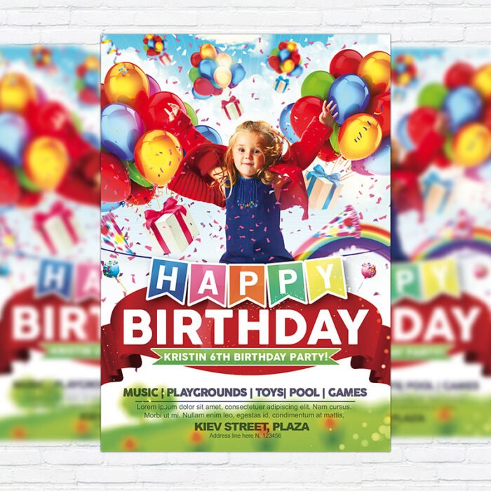 Kids Happy Birthday – Premium Flyer Template + Facebook Cover