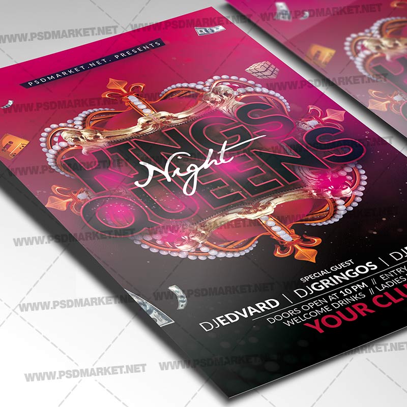 Kings Queens Night Flyer is a simply modern flyer design by PSDmarket Team to be used with Photoshop CS3 and higher. Save your time and use it for business or for your clients! This can be use for Kings Queens Night, Kings Queens, Kings Queens Party, Kings Queens Event, Kings Queens Bash, Kings Queens Template, VIP Party Event, VIP Party Night, VIP Party, VIP Party Night, VIP Event, VIP Night, Anniversary Night, Anniversary Party, Anniversary Celebration, Birthday Party, Champagne Lounge, Bash Night and others.