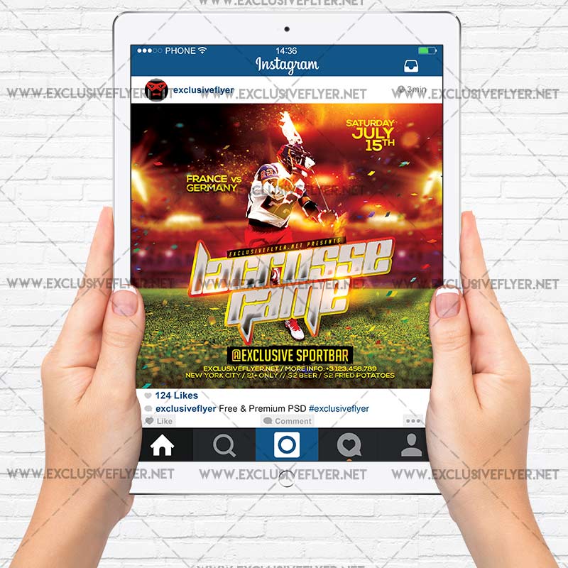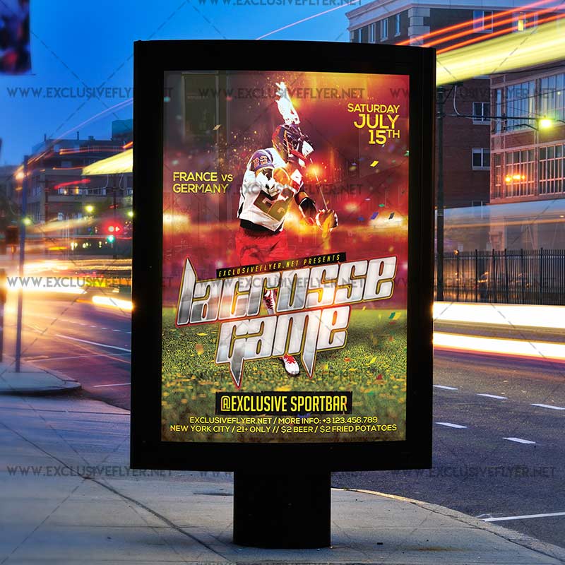 The Lacrosse Game is the exclusive Photoshop PSD flyer template designed by ExclusiveFlyer to promote your Lacrosse Game. This is a modern, stylish flyer and just be used for a Lacrosse Match, Lacrosse Championship etc.