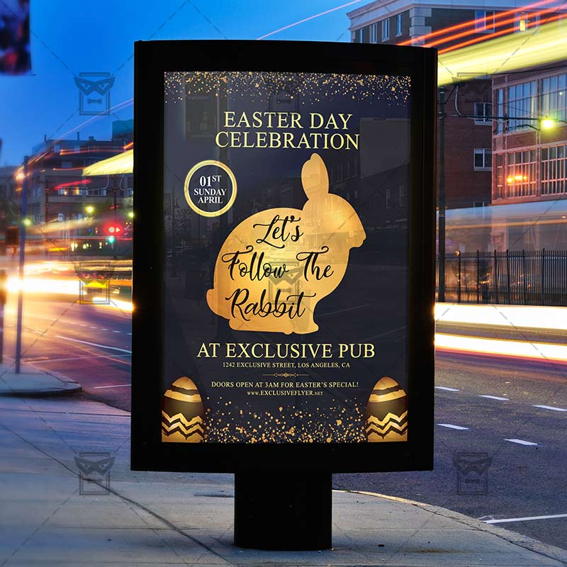 Let’s Follow the Rabbit is an exclusive PSD flyer template for Adobe Photoshop designed by our best graphic designers to facilitate your task in promoting your business. With our readymade The Easter Celebration flyer in psd format you can invite you customers and guest to your event or to the best Easter Party Night, Easter Celebration, Easter Eggs Hunt or Easter Minimal Party in their lives.