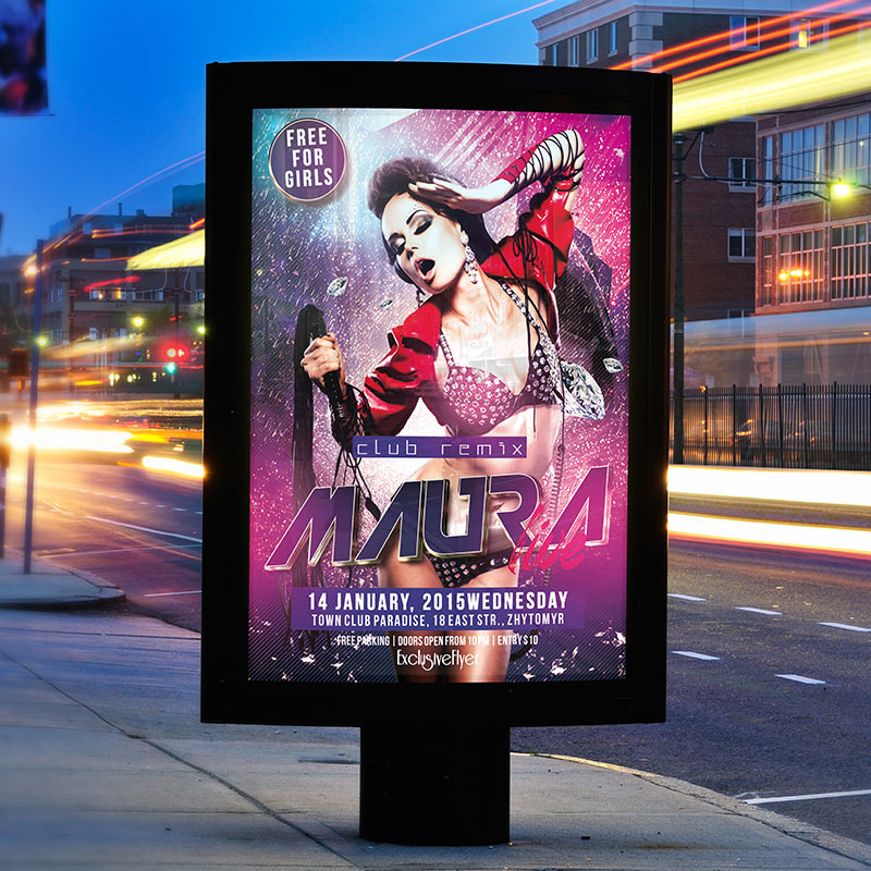 The Live Guest Dj Maura is the exclusive Photoshop PSD flyer template designed by ExclusiveFlyer to promote your Live Guest Dj Maura. This is a modern, stylish flyer and just be used for a Special Guest Party or DJ Night. Dear customers! – you can also: Customize any flyers or Hire Us to create any unique product. Also, you can get unlimited access to all our templates. You can buy 1 month membership, 3 or 6 months membership or even 1 year membership plan and login on site, choose a design, click the button DOWNLOAD TEMPLATE and it’s yours. No hassle, no checkout! When you paid the template, you can find it in your personal account and of course you’ve got a message to your e-mail (maybe in spam) with link to download. Also, you can find all templates, which you buy, in your personal account! All of our flyers have a very good quality (300DPI). And it means that you just need to download one of them and make the necessary modifications such as replace the elements or choose the colors and start to invite your guests! You can order from us design of Banner Ad, Bi-Fold Brochure, Tri-Fold Brochure, Business Card, Logo, One-Sided Flyer, Two-sided Flyer or Postcard. All you need is to checkout and write us all information on our e-mail or skype. (order now). There are a lot of free flyer templates, free business card templates on our site! Also there are a lot of categories of flyers such as club flyers, seasonal flyers, sport flyers and also business flyers. You have a great choise on our site, so good luck! Don’t forget to follow our Facebook community, our page on Twitter, on Pinterest and on Tumblr and leave comments, cause we work for you! PSD is set up in 1275×1875 dimension (4″×6″ with 0,25″ bleed). The PSD file is very well organised, with color coded groups and layers named appropriately. Remember, all stock images of models and other people used only for demonstration all charms of the flyer and don’t included in the download!