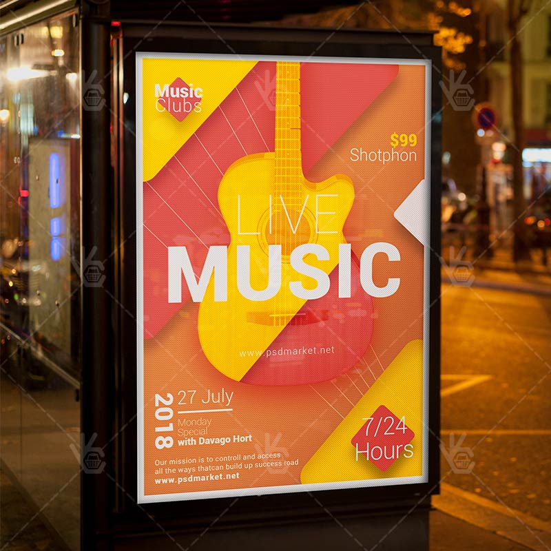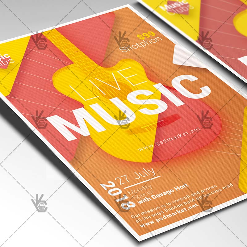 Live Music is a simply modern flyer design by PSDmarket Team to be used with Photoshop CS3 and higher. Save your time and use it for business or for your clients! This can be use for Guitar Party, Rok Night, Guitar Rocks Night, Music Party, Live Music Night, Guitar Night and others.